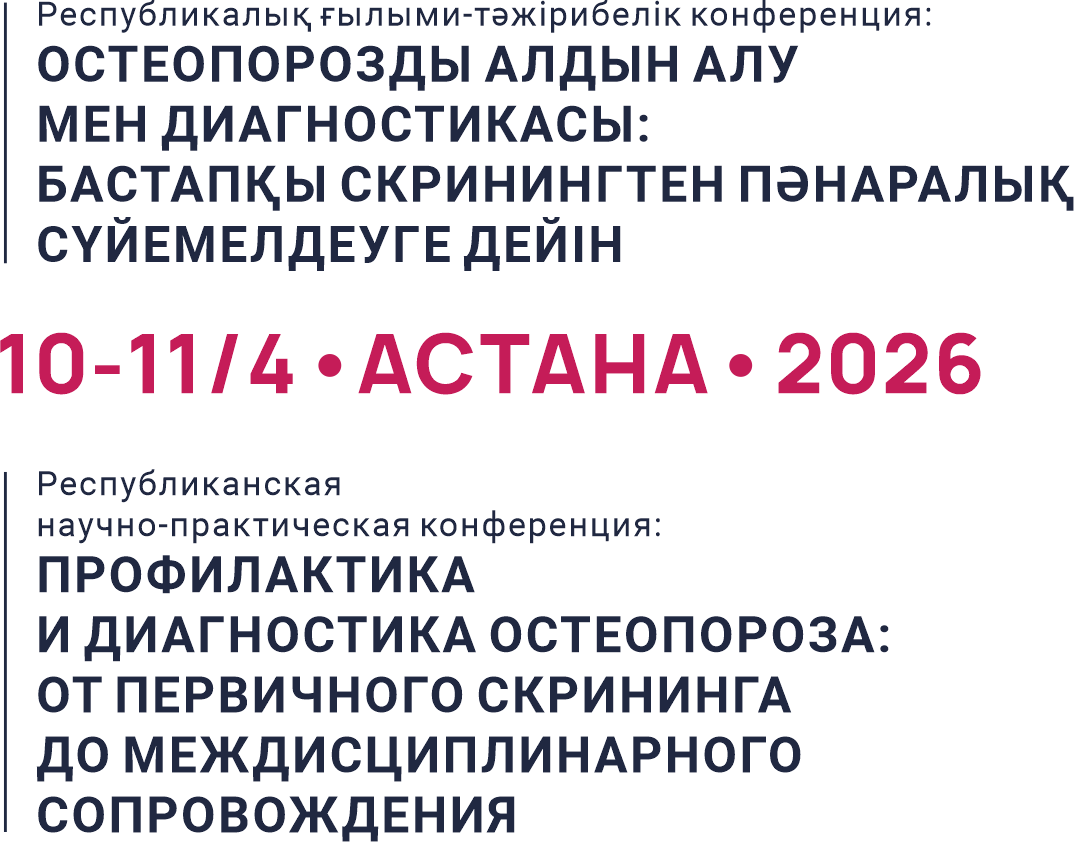 С удовольствием приглашаем вас принять участие в Республиканской научно-практической конференции «Профилактика и диагностика остеопороза: от первичного скрининга до междисциплинарного сопровождения», которая состоится 10–11 апреля 2026 года.